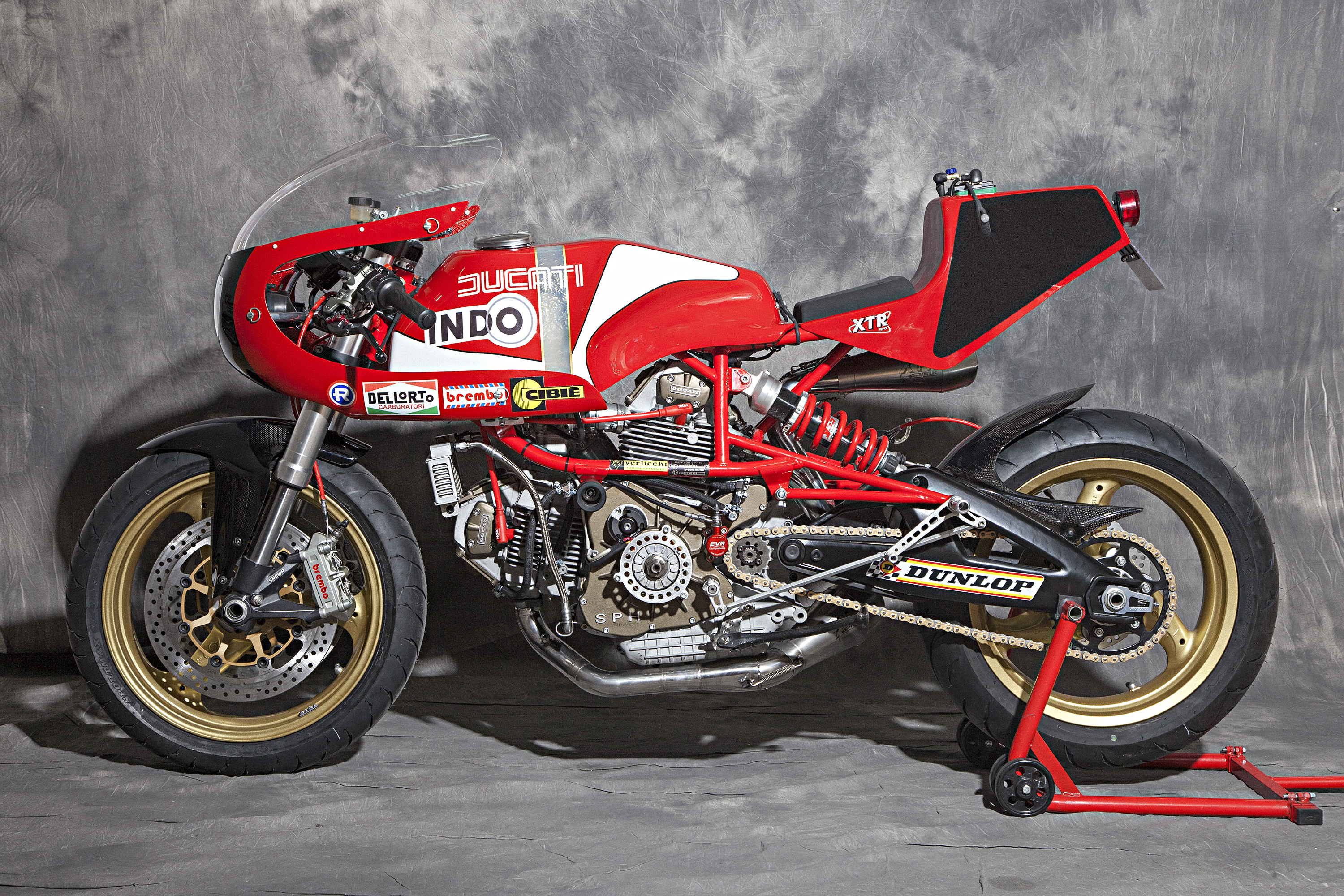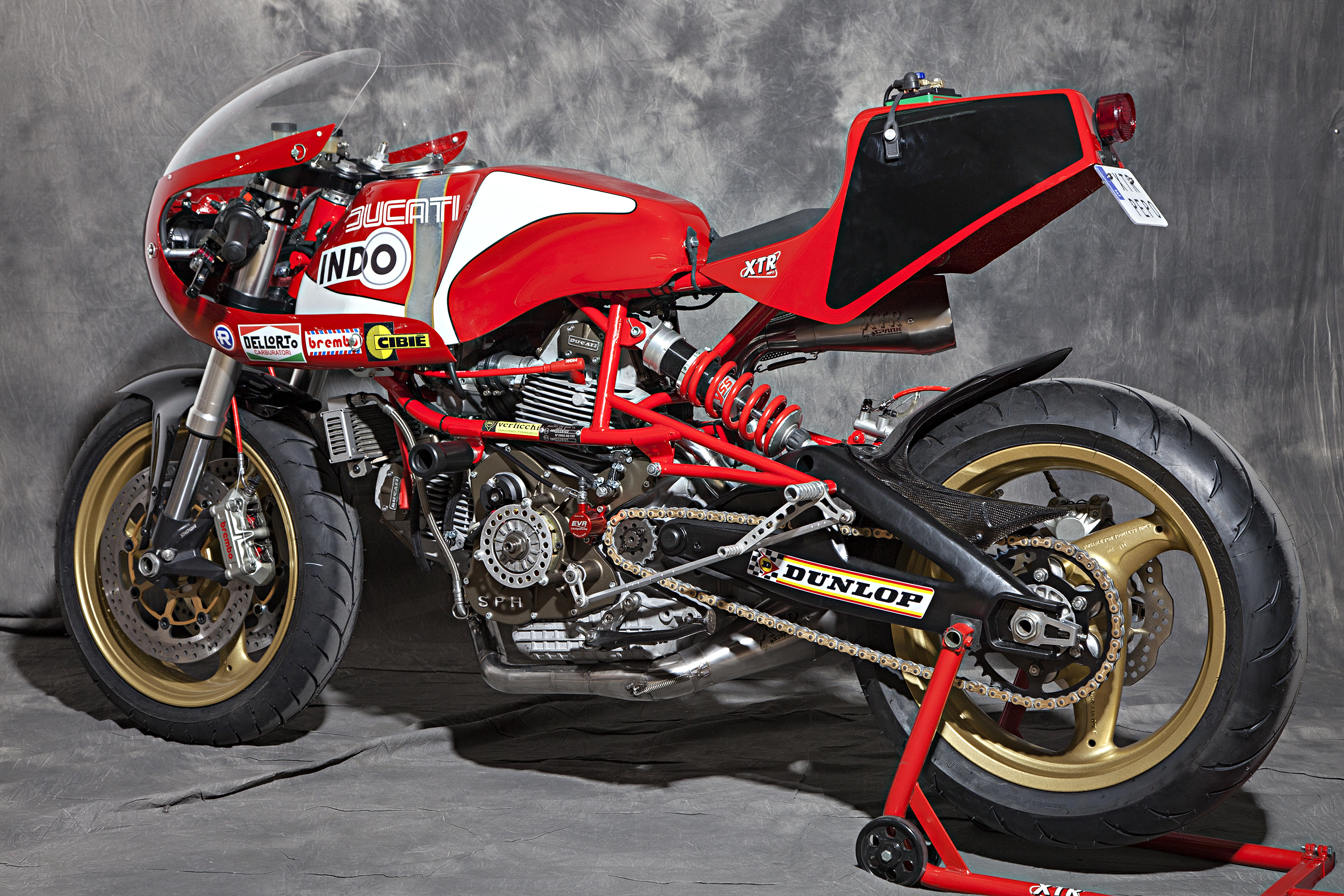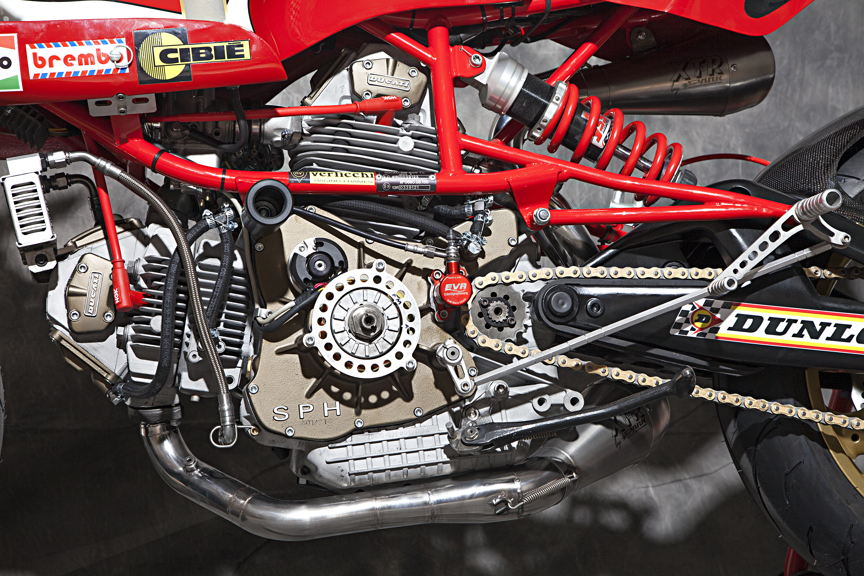-Engine : Ducati 900 SS’92, ported heads, high compressed, Antihooping clutch , SPH dry racing alternator and cover, eliminated flywheel.