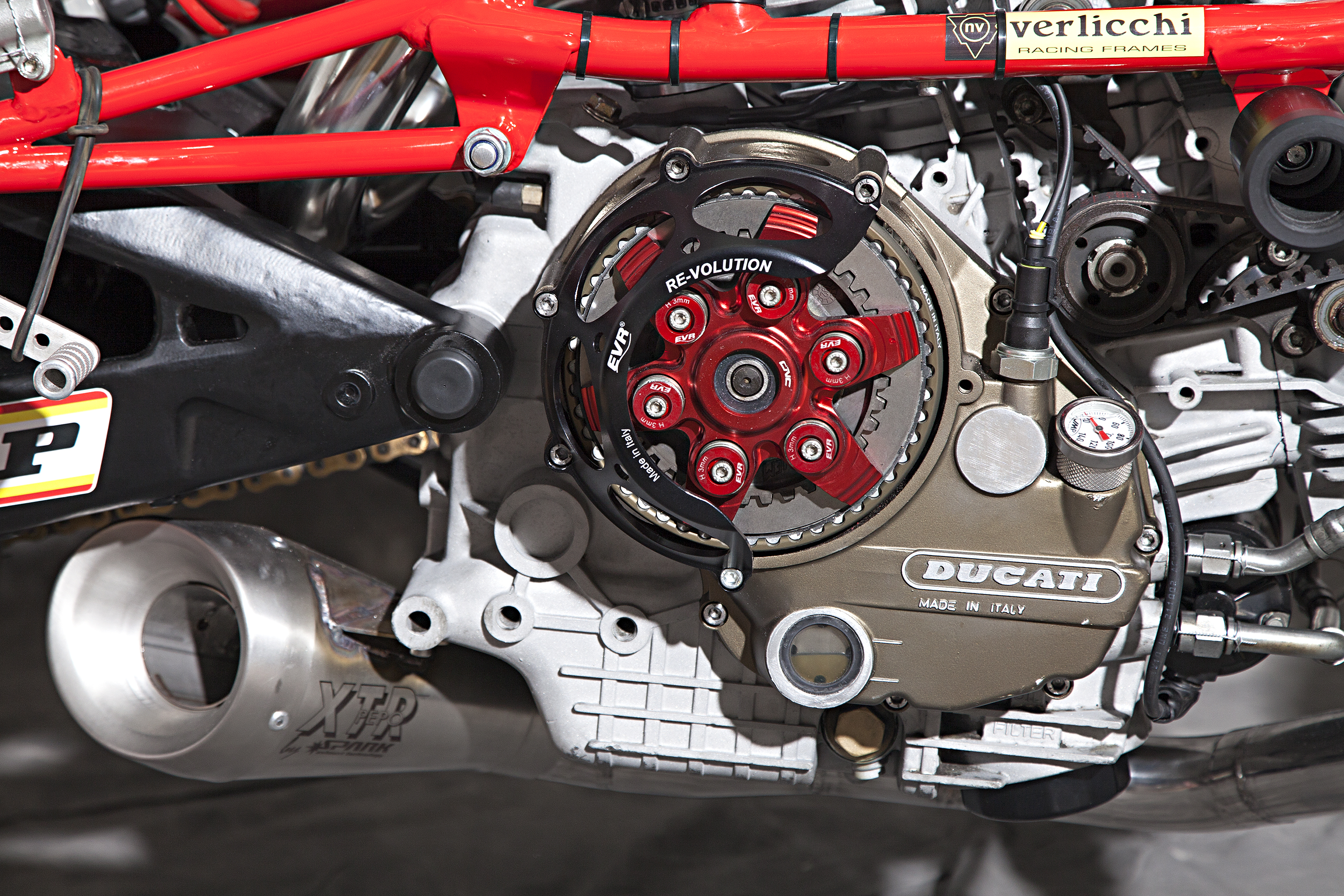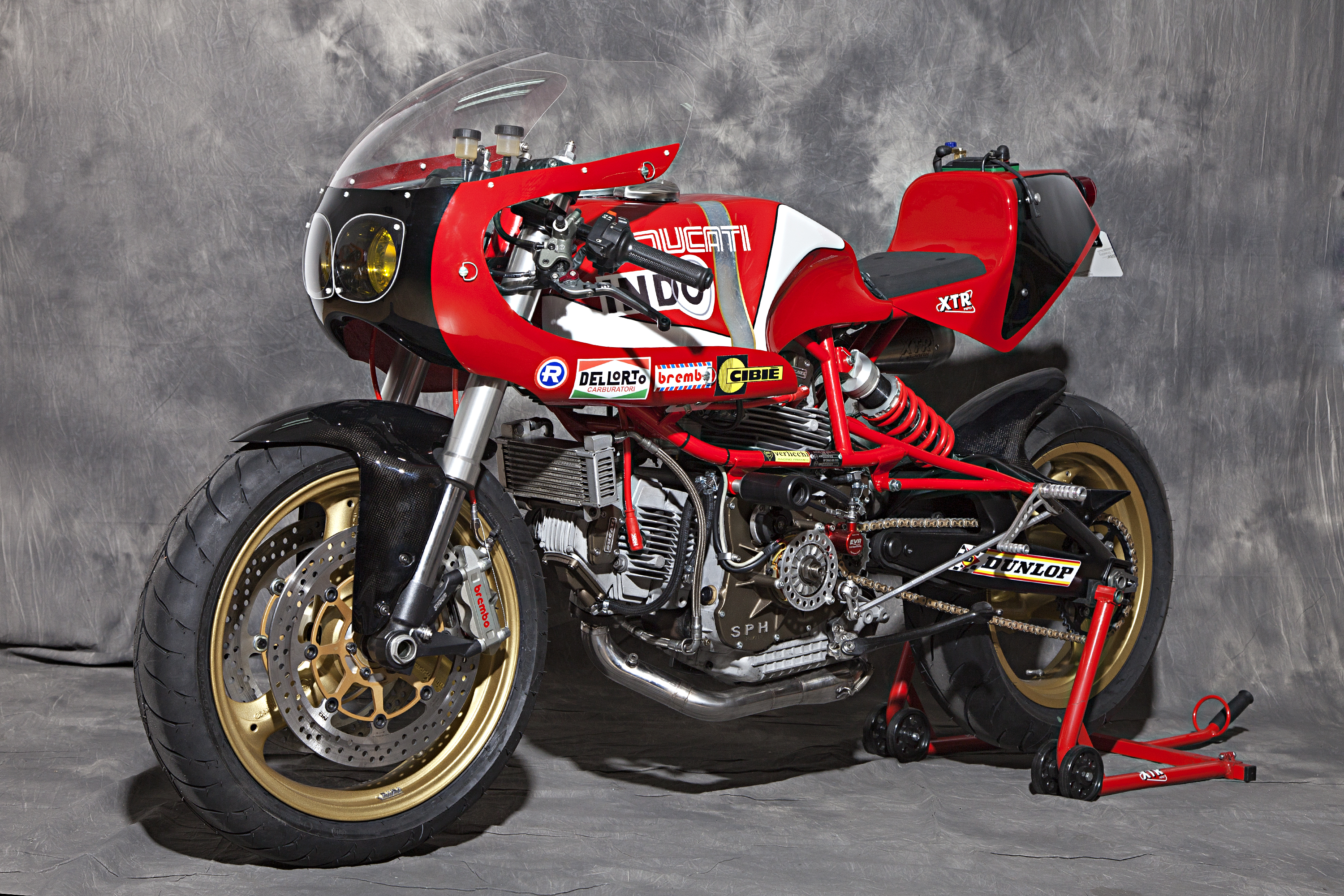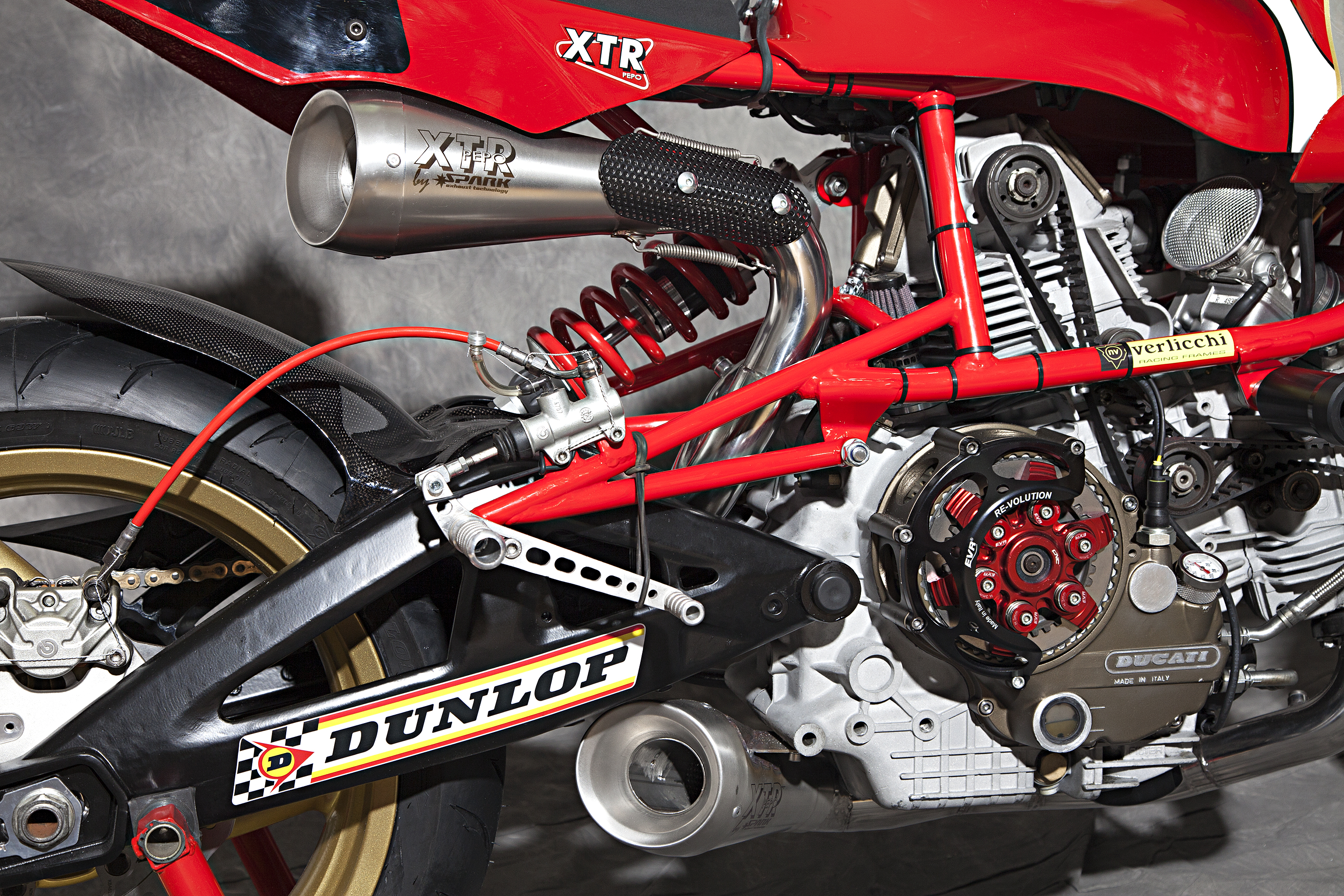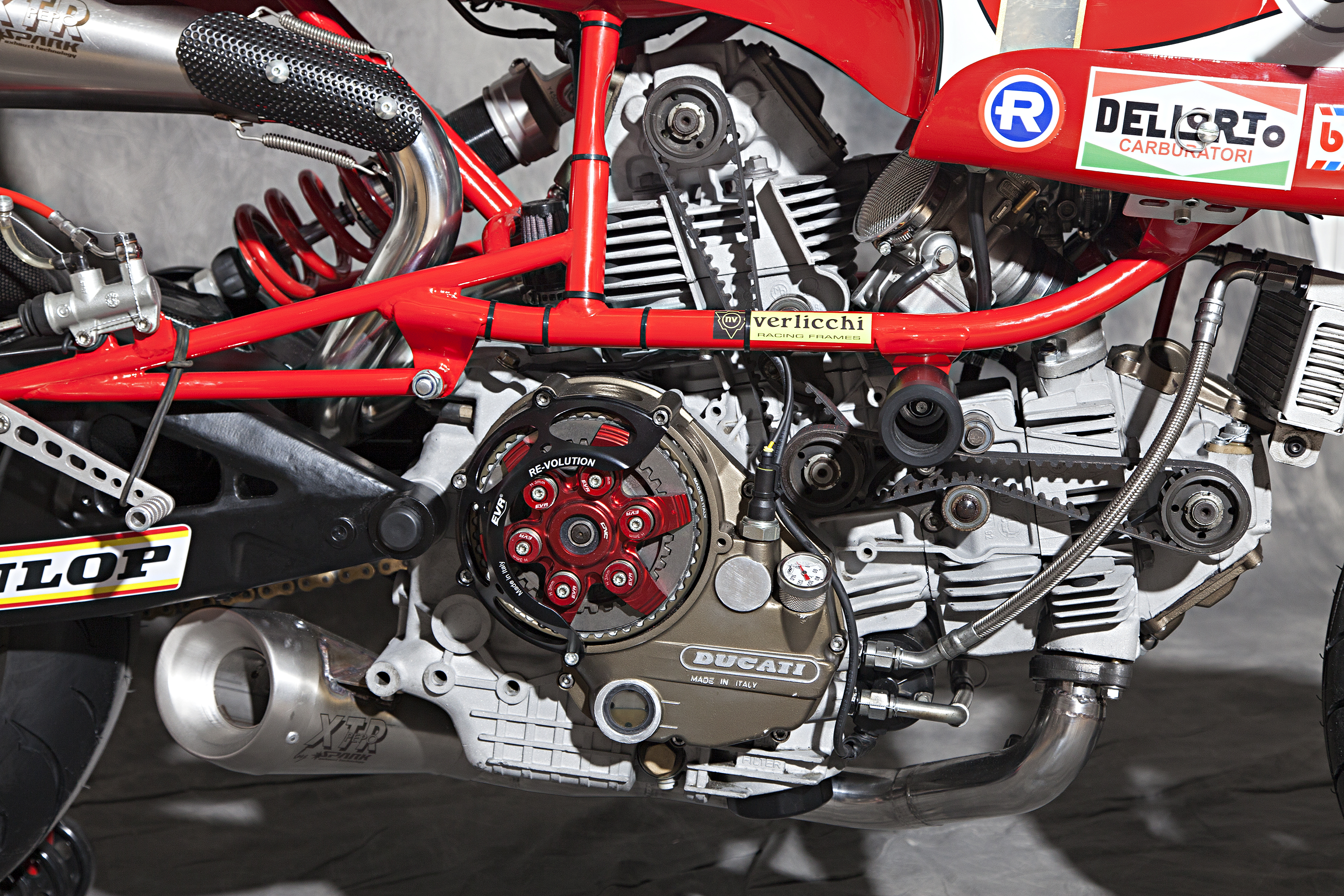 -Engine : Ducati 900 SS’92, ported heads, high compressed, Antihooping clutch , SPH dry racing alternator and cover, eliminated flywheel.